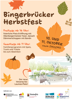 Das letzte Leuchtturmprojekt der Fördermaßnahme „Soziale Stadt - Sozialer Zusammenhalt Bingerbrück“ ist so gut wie abgeschlossen! Um das gebührend zu feiern, startet am 10. Oktober das Herbstfest auf dem neu umgestalteten Venarey-Les Laumes-Platz vorm ZWOZWO.