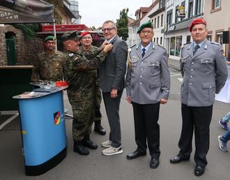 Oberbürgermeister Thomas Feser am Stand der Reservistenkameradschaft, die erstmals mit dabei waren.