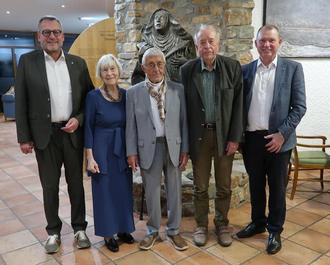Gratulieren Ehrenbürger Seppel Götze (Mitte) zum 95. Geburtstag: Oberbürgermeister Thomas Feser, Ehrenbürgerin Brigitte Giesbert, Oberbürgermeister a. D. Erich Naujack und Michael Hüttner, MdL.