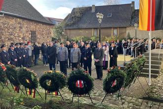 Der feierliche Rahmen der Veranstaltung wurde durch Beiträge von Pfarrerin Brinkhaus-Bauer, Pfarrer Lerchl und der Katholischen Kirchenmusik „Cäcilia“ Sponsheim gestaltet. Auch Abordnungen der Bundeswehr, der Reservistenkameradschaft Rhein-Nahe, der Feuerwehr, des Deutschen Roten Kreuzes und des Volksbunds nahmen an der Veranstaltung teil.