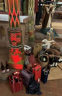 Die mitgebrachten Weine werden vor dem Altar für den Johannissegen bereit gestellt.