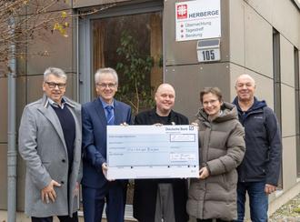 Die Präsidenten des Lions Clubs Bingen und Rhein-Nahe, Jörg Berres und Dr. Annette Deynet-Vucenovic überreichten in der Herberge Bingen eine gemeinsame Spende in Höhe von 8.000 €.