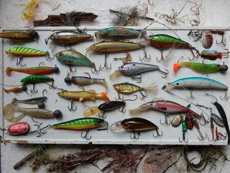Das Zurücklassen von künstlichen Angelködern (Blinker, Wobbler, Spinner) und diverser Einzelhaken unterschiedlicher Größe meist mit Widerhaken und abgerissener Schnur ist leider keine Seltenheit im Binger Hafen wie das Foto der dort gefundenen Objekte zeigt.