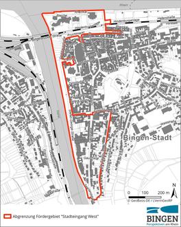 Karte "Abgrenzung Fördergebiet Stadteingang West". Stadt Bingen