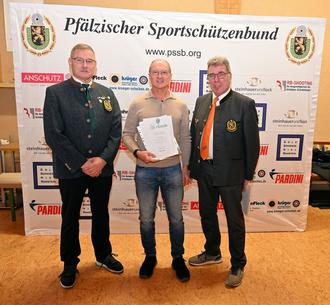 Am Sonntag, dem 25.01. fand beim Schützenverein Herxheim die alljährliche Ehrung verdienter Sportler des Pfälzischen Sportschützenbundes (PSSB) statt. Präsident Klaus Baßler und Landessportleiter Thilo Neitsch hatten zum Empfang mit Büffet geladen und mehr als 30 Sportschützinnen und -schützen mit Begleitpersonen waren der Einladung gefolgt. Dabei waren alle Disziplinen wie Sommerbiathlon, Bogenschießen sowie olympische und nicht olympische Gewehr- und Pistolendisziplinen vertreten. In seiner Begrüßungsrede bedankte sich Präsident Baßler bei den Sportlern für deren Einsatz und ihre Erfolge für den PSSB im vergangenen Jahr. Geehrt wurden Deutsche Meister, Europameister und Weltmeister. Für die Binger Schützengesellschaft 1471 e. V. gehörte einmal mehr Sommerbiathlet Stephan Werner zu den Geehrten. Der mit inzwischen insgesamt 29 DM-Titeln erfolgreichste Sportler am Rhein-Nahe-Eck erhielt für seine beiden Siege und zwei Vizemeisterschaften bei den letztjährigen Deutschen Meisterschaften von Landessportleiter Thilo Neitsch eine Dankesurkunde und ein Geldgeschenk.