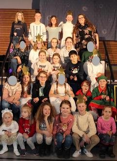 Alle Chorgruppen singen im Schulhaus der Sponsheimer Grundschule.