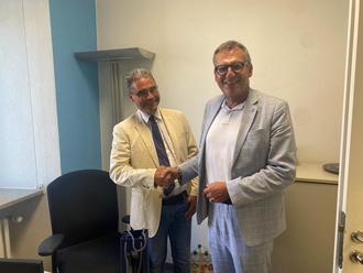 Von Größe und Ausstattung überschaubar ist das neue Domizil, in das der örtliche Redakteur der Allgemeinen Zeitung Bingen, Michael Lang, eingezogen ist. In einer zunehmend digitalisierten Medienwelt aber vollkommen ausreichend, versichert Lang dem Oberbürgermeister bei dessen Besuch im neuen Büro im Gebäude der VHS am Freidhof in Bingen. Seit 5. August hat er die neue Büroanschrift und nach Terminvereinbarung über die bekannte Telefonnummer 06132/790504446 bzw. per Mail an michael.lang@vrm.de empfängt er dort auch Interviewpartner oder Leser/innen, die das Gespräch mit ihm führen möchten. Ähnlich zentral gelegen wie in der alten Dependance in der Hasengasse hat das neue Büro noch einen weiteren Vorteil. Es ist endlich mal barrierefrei, was bis dato noch nie der Fall war, betont Michael Lang im Gespräch mit dem Oberbürgermeister. Und Letzterer freut sich, dass Michael Lang mit dieser Lösung sehr zufrieden ist, denn Feser hatte, als er von der Raumsuche erfuhr, maßgeblich unterstützt und den Tipp mit der VHS gegeben. „Für Bingen ist es wichtig noch einen direkten Ansprechpartner für die Tageszeitung vor Ort zu haben und insofern habe ich im Interesse der Bürgerinnen und Bürger gerne bei der Quartiers-suche geholfen“, so ein sichtlich zufriedener Oberbürgermeister. Denn bei aller Digitalisierung, morgens eine druckfrische regionale Tageszeitung in Händen zu halten ist gerade für die ältere Generation ein Ritual auf das man nicht verzichten möchte.