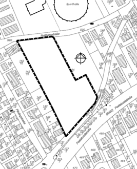 Der genaue Geltungsbereich des Bebauungsplanentwurfes ist in der obenstehenden Planskizze durch eine dick gestrichelte Linie umrandet.