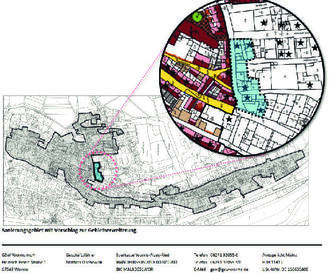 Im nachfolgend näher beschriebenen Gebiet liegen städtebauliche Missstände im Sinne von § 136 Abs. 2 Nr. 1 und 2 BauGB vor. Dieser Bereich soll durch städtebauliche Sanierungsmaßnahmen wesentlich verbessert oder umgestaltet werden. Das insgesamt etwa 0,15 ha umfassende Gebiet wird hiermit förmlich als 2. Erweiterung des Sanierungsgebiets „Historische Innenstadt“ festgelegt; die Bezeichnung „Historische Innenstadt“ wird beibehalten. Die Grenzen des Sanierungsgebietes ergeben sich aus nachfolgender Regelung. Das Sanierungsgebiet umfasst alle Grundstücke und Grundstücksteile innerhalb der im beigefügten Lageplan abgegrenzten Fläche. Dieser Lageplan ist Bestandteil der Satzung und als Anlage dieser Bekanntmachung beigefügt.