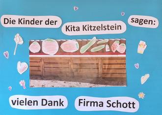 Die Kinder und das Team der Kita Kitzelstein bedanken sich ganz herzlich bei der Firma Schott für die großzügige Holzspende!