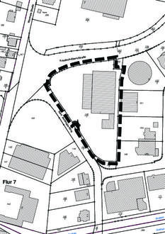 Der genaue Geltungsbereich des Bebauungsplanentwurfes ist in der oben stehenden Planskizze durch eine dick gestrichelte Linie umrandet.