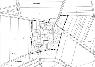 Der genaue räumliche Geltungsbereich des Bebauungsplanes ist in der obenstehenden Planskizze durch eine dick gestrichelte Linie umrandet (ohne Maßstab).