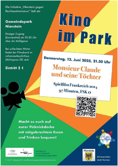 Kino im Park der Stadt Nierstein lebt wieder auf. Dies an drei Abenden, am Donnerstag den 12. Juni, am Donnerstag den 3. Juli und am Donnerstag den 24. Juli jeweils ab 21:30 Uhr.