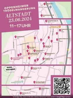 Die Trödelwanderung in Oppenheim wird dieses Jahr in zwei Teilen stattfinden. Am 23.6. erkunden wir die Altstadt, also alles oberhalb der Friedrich-Ebert-Straße Richtung Katharinenkirche, und im Herbst wird es eine Trödelwanderung in der Neustadt geben.
