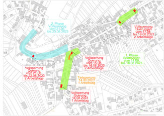 Die Voll- und Teilsperrungen erfolgen in zwei Phasen, die Anwohner erhalten dazu einen Kundenbrief mit Übersichtsplan. Bei den Vollsperrungen ist die Straße für den normalen Verkehr gesperrt.