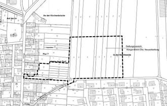 Der genaue räumliche Geltungsbereich des Bebauungsplanes ist in der obenstehenden Planskizze durch eine dick gestrichelte Linie umrandet (ohne Maßstab).