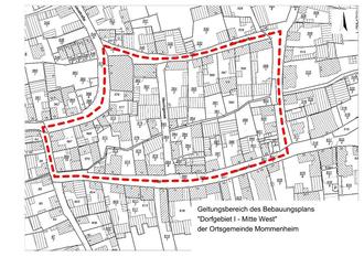 Der Rat der Gemeinde Mommenheim hat in seiner öffentlichen Sitzung am 23.09.2021 die Aufstellung des Bebauungsplanes „Dorfgebiet I - Mitte West“ gemäß § 2 Abs. 1 Baugesetzbuch (BauGB) beschlossen. Der Aufstellungsbeschluss wurde am 29.09.2021 gemäß § 2 Abs. 1 BauGB im Bekanntmachungsorgan „Rhein-Selz Aktuell“ der Gemeinde Mommenheim öffentlich bekannt gemacht. In seiner Sitzung am 12.06.2025 hat der Rat der Ortsgemeinde Mommenheim den Verfahrenswechsel von einem Bebauungsplan der Innenentwicklung im beschleunigten Verfahren nach § 13a BauGB zu einem Bebauungsplan im Normalverfahren nach §§ 2 und 3 BauGB und die Fortsetzung des Aufstellungsverfahrens nach § 2 BauGB i.V.m. § 30 Abs. 1 BauGB sowie die Billigung des Planentwurfes und den Auslegungsbeschluss zur Durchführung einer Offenlage gemäß § 3 Abs. 2 BauGB beschlossen.