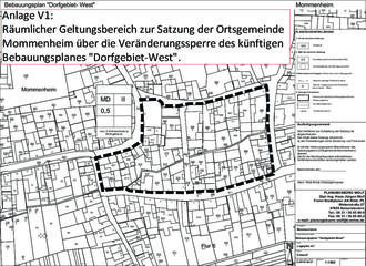 Der Gemeinderat der Ortsgemeinde Mommenheim hat in seiner Sitzung am 23.09.2021 beschlossen, für das in § 2 bezeichnete Gebiet einen Bebauungsplan mit der Bezeichnung „Dorfgebiet-West“ aufzustellen. Die Planung sieht die Festsetzung eines Dorfgebietes zur Erhaltung und maßvollen (Weiter-) Entwicklung der dörflich geprägten Siedlungsstruktur im Ortskern von Mommenheim vor. Zur Sicherung der Planung wurde für dieses Gebiet eine Veränderungssperre erlassen. Diese trat am Tage ihrer Bekanntmachung am 29.09.2021 über die Geltungsdauer von einem Kalenderjahr in Kraft. Mit dieser Satzung wird die Verlängerung der bisherigen Veränderungssperre um ein weiteres Kalenderjahr angeordnet (§ 17 Abs. 1 BauGB).
