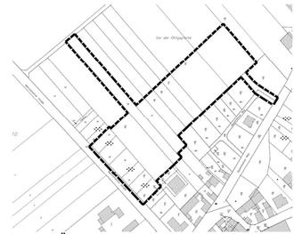 Der genaue Geltungsbereich des Bebauungsplanentwurfes ist in der oben stehenden Planskizze durch eine dick gestrichelte Linie umrandet. Das Plangebiet befindet sich am nördlichen Ortsrand zwischen der Weinolsheimer Straße (L 437) und dem Friedhof, zudem grenzt es unmittelbar an das bestehende Baugebiet „Oppenheimer Weg“ an.