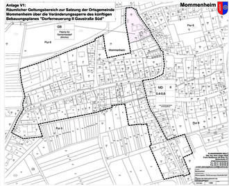 Der räumliche Geltungsbereich der Veränderungssperre ergibt sich aus der Karte (räumlicher Geltungsbereich), die als Anlage zur Veränderungssperre Teil der Satzung ist.