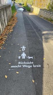 Die Stadt Oppenheim setzt damit einen Stadtratsbeschluss um, dem ein Antrag der WFO-Fraktion vorangegangen war. Auch an weiteren Wegen im Stadtgebiet soll das Piktogramm aufgebracht werden. Gerne werden dazu auch Bürgeranregungen unter schlaak@stadt-oppenheim.de entgegengenommen.