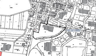 (Der genaue Geltungsbereich des Bebauungsplanentwurfes ist in der obenstehenden Planskizze durch eine dick gestrichelte Linie umrandet)