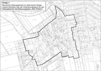 Der räumliche Geltungsbereich der Veränderungssperre entspricht dem Geltungsbereich des Bebauungsplans „Alter Ortskern“ und ergibt sich aus dem beiliegenden Lageplan, der als Anlage 1 zur Veränderungssperre Teil der Satzung ist.