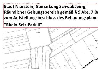 Der Rat der Stadt Nierstein hat in seiner öffentlichen Sitzung am 11.12.2023 die Aufstellung des Bebauungsplanes „Rhein-Selz-Park II“ gemäß § 2 Abs. 1 (BauGB) beschlossen.