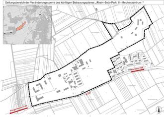 Der räumliche Geltungsbereich der Veränderungssperre ergibt sich aus der Karte (räumlicher Geltungsbereich), die als Anlage zur Veränderungssperre Teil der Satzung ist.