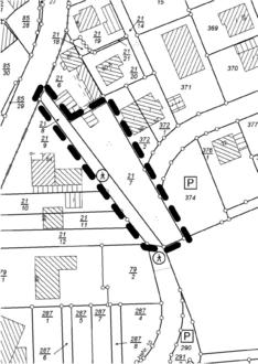 Der genaue Geltungsbereich des Bebauungsplanentwurfes ist in der oben stehenden Planskizze durch eine dick gestrichelte Linie umrandet.