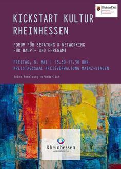 Am 08.05. stehen Ihnen im Kreistagssaal der Kreisverwaltung Mainz-Bingen in Ingelheim von 13:30 – 17:30 Uhr Fördermittelgebende, Unterstützende und Beratende für das Haupt- und Ehrenamt aus der regionalen und rheinland-pfälzischen Kulturlandschaft für Sie bereit.