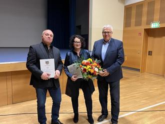 Das Weingut Michael Gruber aus Aspisheim glänzte 2022 mit 12 goldenen, 15 silbernen und 3 bronzenen Kammerpreismünzen der Landwirtschaftskammer Rheinland-Pfalz. Diese besonderen qualitativen Leistungen im Weinbau würdigte Herr Bürgermeister Manfred Scherer dem Weingut mit dem Ehrenpreis der Verbandsgemeinde Sprendlingen-Gensingen. Im Rahmen der Verbandsgemeinderatssitzung vom 06.02.2023 gratulierte Herr Scherer Herrn und Frau Gruber in dem er ihnen einen Blumenstrauß, die Urkunde und ein Schild der Auszeichnung überreichte.