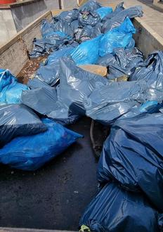 Es wurde trotz leichtem Regen fleißig Müll gesammelt, in Müllsäcke gepackt und auf den Anhänger geladen.