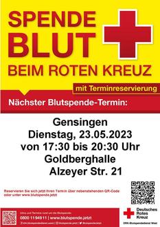 Blutspende in Gensingen am 23.05.2023 mit Online-Terminreservierung.
