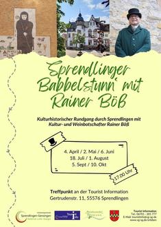 Lassen Sie sich von Rainer Böß, dem kenntnisreichen Kultur- und Weinbotschafter, auf eine unterhaltsame Zeitreise durch das charmante Sprendlingen entführen. Auf einem rund 90-minütigen Rundgang erfahren Sie spannende Anekdoten, überraschende Details und humorvolle Geschichten aus der langen Geschichte des Ortes – von alten Gemäuern bis hin zu verborgenen Winkeln mit besonderem Flair.