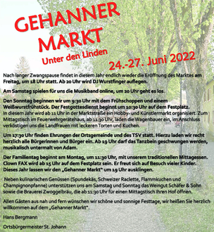 Allen Gästen aus nah und fern wünschen wir schöne, harmonische und sonnige Festtage, wir heißen sie herzlich willkommen auf dem Gehanner Markt