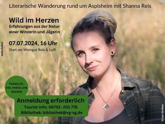 Bei unserer Weinwanderung liest Shanna an drei Stationen aus ihrem Buch und lässt uns die Weine ihres Weingutes testen. Die Wanderung startet am Weingut Reis & Luff, Am Sonnenberg 16, 55459 Aspisheim.