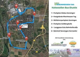 Viel wird geboten mit Gesundheitsmesse, Gewerbemeile, Winzerdorf, Konzerte, Künstlermarkt, Automeile und Jahrmarkt sowie in Bühnenprogramm auf drei Bühnen. Es wird zu den Festzeiten einen Busshuttle geben, der einen Rundkurs durch Gensingen fährt mit Haltepunkten wie Einfahrt Gensingen West (P&R-Parkplatz), Goldberghalle, Ecke Bahnhofstraße, Bahnhof Gensingen-Horrweiler und Globus-Parkplatz P5 und dann wieder zur Nahetal-Arena. Alle Festgäste und Mitfahrer werden gebeten, sich ein Rheinhessen-Tags-Bändchen (einmalig) für 5,- Euro als kleinen Festbeitrag zu kaufen. Die Meilen, Messe und Bühnen (außer die 4 Abendkonzerte) sind frei.