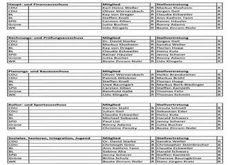 Aus sachlichen Gründen konnte und sollte jedoch bei den anderen Ausschüssen die Regelung, die Ausschüsse jeweils zu 50% mit Ratsmitgliedern und Bürgern, zu besetzen, nicht eingehalten werden