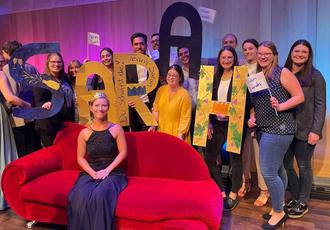 An ihrer Seite stehen noch drei Weinprinzessinnen, die für ein Jahr die Weinbauregion Rheinhessen präsentieren.