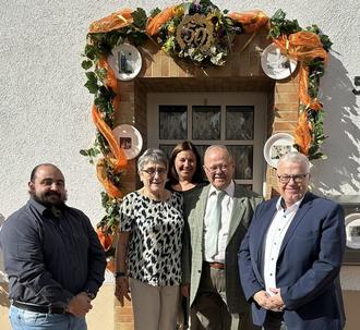 Neben Familie, Freunden und Nachbarn gratulieren Bürgermeister Scherer und Ortsbürgermeister Hanau dem Jubelpaar höchstpersönlich und übermitteln herzliche Glückwünsche der Landrätin.