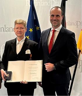 Die Sprendlinger Bürgerin, Dr. Maren Messinger, hat die Verdienstmedaille des Landes Rheinland-Pfalz von Wissenschafts- und Gesundheitsminister Clemens Hoch überreicht bekommen. Die leitende Laborärztin hat unter anderem ein zielgerichtetes Screening-Verfahren auf den gefürchteten Krankenhauskeim MRSA entwickelt. Zuvor fehlte solch ein zuverlässiger und schneller Test für den Nachweis von MRSA, der von jedem Labor durchgeführt werden kann. Durch das zuverlässige und schnelle Testverfahren können das MRSA-Infektionsrisiko deutlich gesenkt und hohe Therapiekosten vermindert werden. Die Ortsgemeinde Sprendlingen spricht Frau Dr. Messinger große Anerkennung aus.
