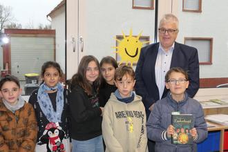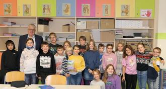 Bürgermeister Scherer interessiert sich zu Beginn seiner Lesestunde für die Lesefreudigkeit der Schülerinnen und Schüler der 4. Klassen der beiden Grundschulen. Bei beinahe einem Drittel der Kinder fliegen die Finger in die Höhe - und auch: Die diesjährige Geschichte ist einigen Gensinger Schülerinnen und Schülern durchaus schon bekannt.