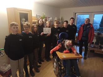 Eine Spende in Höhe von 500 Euro überreichte die Wolfsheimer Kerbejugend an ihren an einen Rollstuhl gefesselten Alterskameraden Niklas Lücking. Die Spende resultiert aus dem Erlös des Verkaufsstandes der Jugendlichen an der letztjährigen Kerb.