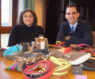 Denn so wie jeder Hund anders ist, möchten viele Hundebesitzer eine individuelle Ausstattung. Selbst wenn es kein Leder sein soll, ist das kein Problem, Andrea Orth fertigt Zubehör auch aus Gobelin oder Kork an. Verbandsbürgermeister Maximilian Abstein, selbst Hundebesitzer, zeigte sich sichtlich beeindruckt von der Vielfalt und der Qualität der Produkte.