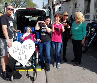 Das Auto der Familie konnte, nachdem die Biker des „Niblungen MC Worms“ und noch viele andere sowie auch der Ortsverein der AWO Hamm Spenden für den behindertengerechten Umbau im vergangenen Jahr gesammelt hatten, endlich umgebaut werden, so dass Emely jetzt überall von ihrer Familie im Auto mitgenommen werden kann.