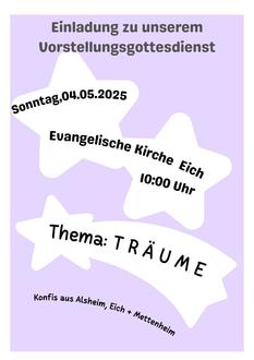 Zum diesem Gottesdienst um 10 Uhr in der Ev. Kirche Eich laden wir recht herzlich ein.