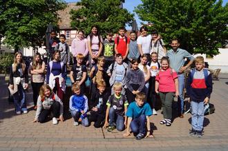 Bürgermeister Maximilian Abstein mit der Klasse 5 b der Realschule Plus Eich
