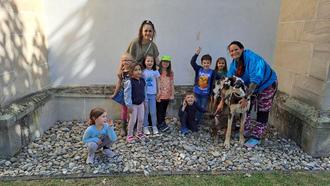Nadine erklärte den Vorschulkindern viel über die Hunde, ihre Bedürfnisse und wie man richtig mit ihnen umgeht. Selbstverständlich hatten die Kinder die Möglichkeit, Maddox und Thalia zu streicheln und näher kennenzulernen. Außerdem beantwortete Nadine geduldig alle Fragen der interessierten Kinder.
