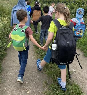 Natur- und Waldpädagoge Albert zeigte ihnen verschiedene Käfer, Raupen und sogar Spinnen - viele kleine Wunder, die sonst oft unbemerkt bleiben. Die Großen halfen den Kleinen, entdeckten mit ihnen Verstecke und erklärten, was sie bereits wussten.